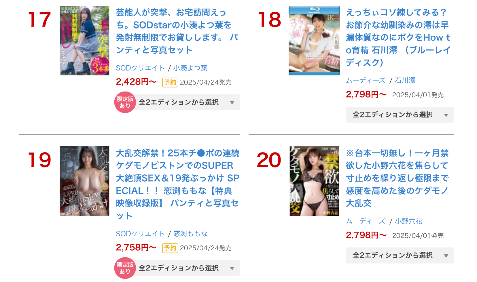 她的新作「えっちぃコソ练してみる?お节介な幼驯染みの澪は早漏体质なのにボクを如何to育精”这次排行第18,珊瑚她最近卖得比较不好的作品,不过奇怪的事情来了,看到我们河北彩伽作品销售排行第五然后累计销售的月间AV女优排行榜高居第二,但我们怎么退出now直播账号找到就是找不到石川澪,你以为FANZA把她自己好好地忘记了她的存在吗?没有喔,你要拉到最后一页,才会在累积销量的月间AV女优排行榜石川澪「只有」第94名,勉强进榜…