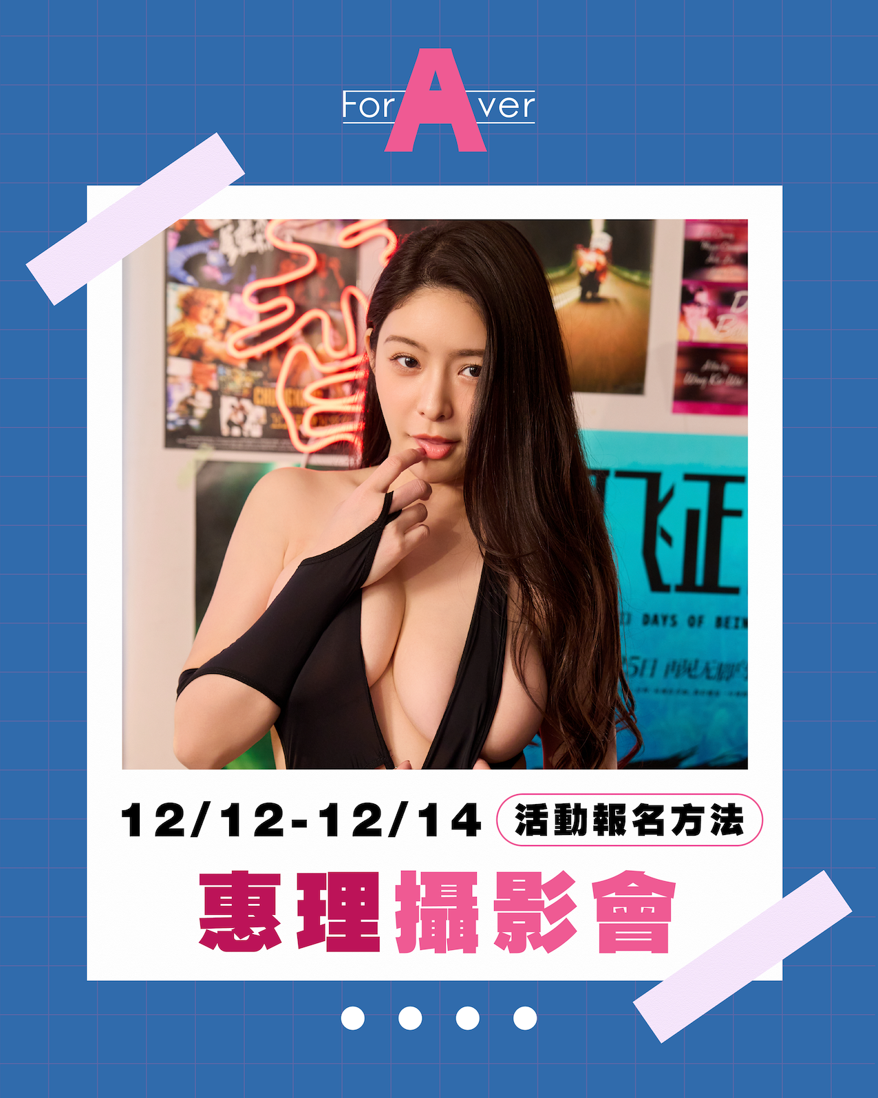所以邀约您一起来报名参加变态姐姐めぐり(惠理)的台湾摄影会,时间是12月12到14日,我们一样会安排2场一对一的棚闪摄影会(12/12),五场的团体摄影会(12/13两场,12/14三场),团体场全报的朋友可以和变态姐姐一起吃晚餐: